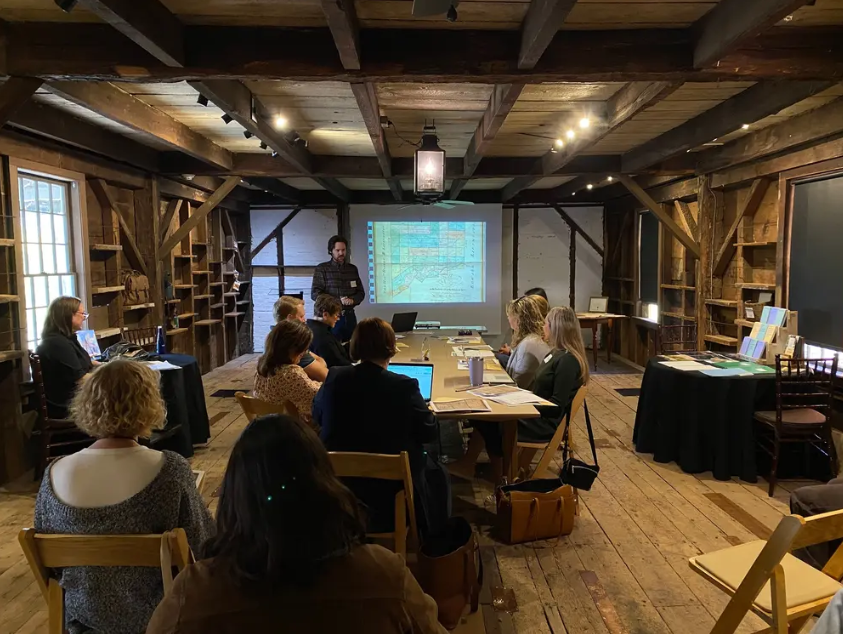 We are open for private guide tours that include immersive digital installations and collection artworks in the historic interiors, and we are announcing our Sunday Salon speaker series and Winter Guided Tours soon, which bring new ideas in American art to Catskill once a month from January through April.