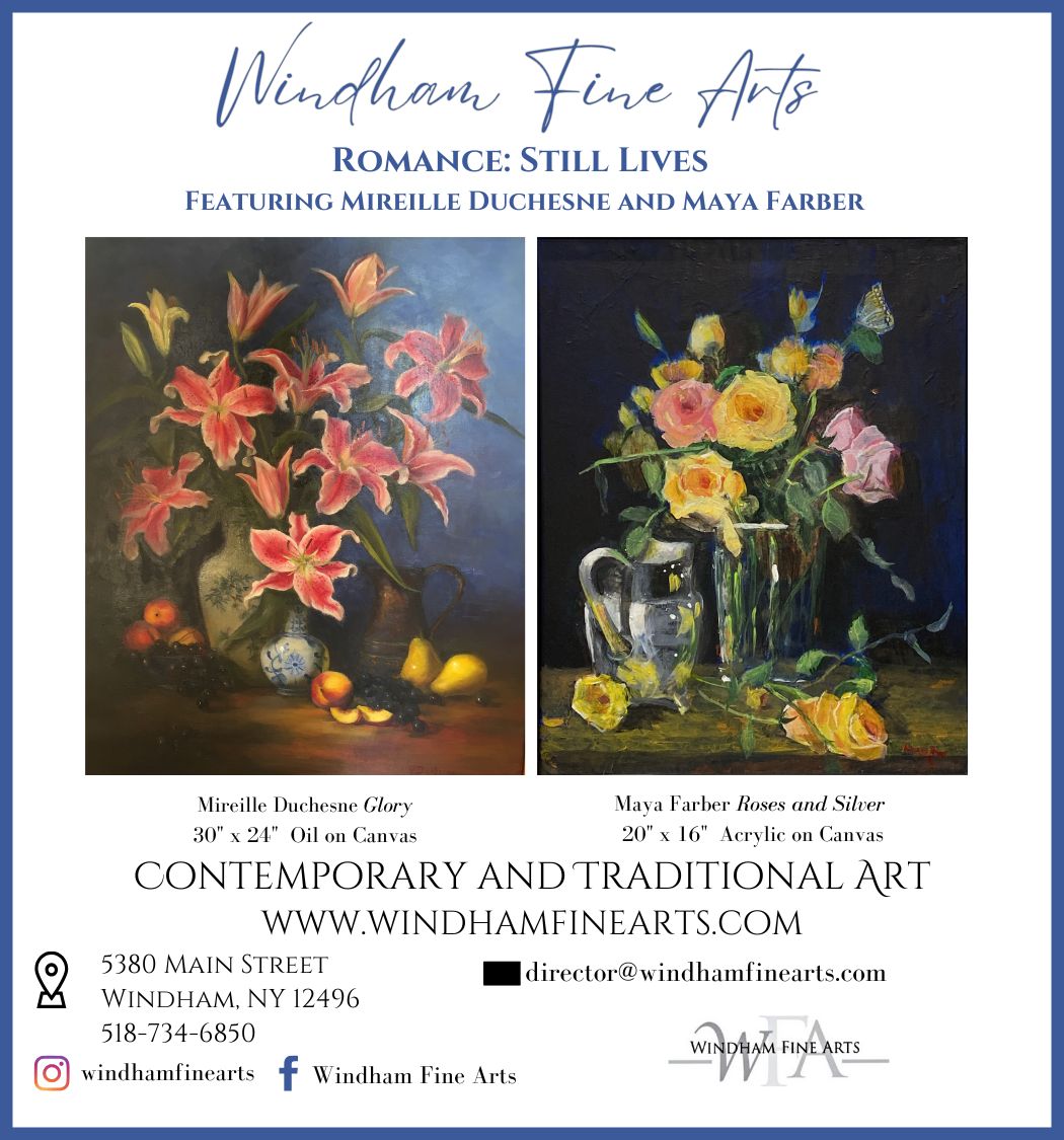 Windham Fine Arts presents Romance Lives, an artist spotlight featuring artists Mireille Duchesne, Maya Farber, Barry DeBaun, Leila Yassami and more. Join us in celebrating still life art--a timeless and romantic genre, bringing together lush florals, reflective interiors, and expressive arrangements rendered in oil, watercolor, and acrylic. Bridging contemporary and traditional approaches, these works invite close looking and quiet contemplation. Using vivid, tropical colors, Maya Farber reflects on her style, "I paint what I feel' noting flowers have always been a source of inspiration. "It's my joy of life I wish to share," says Mireille Duchesne. Experience romance, love, and art at Windham Fine Arts.