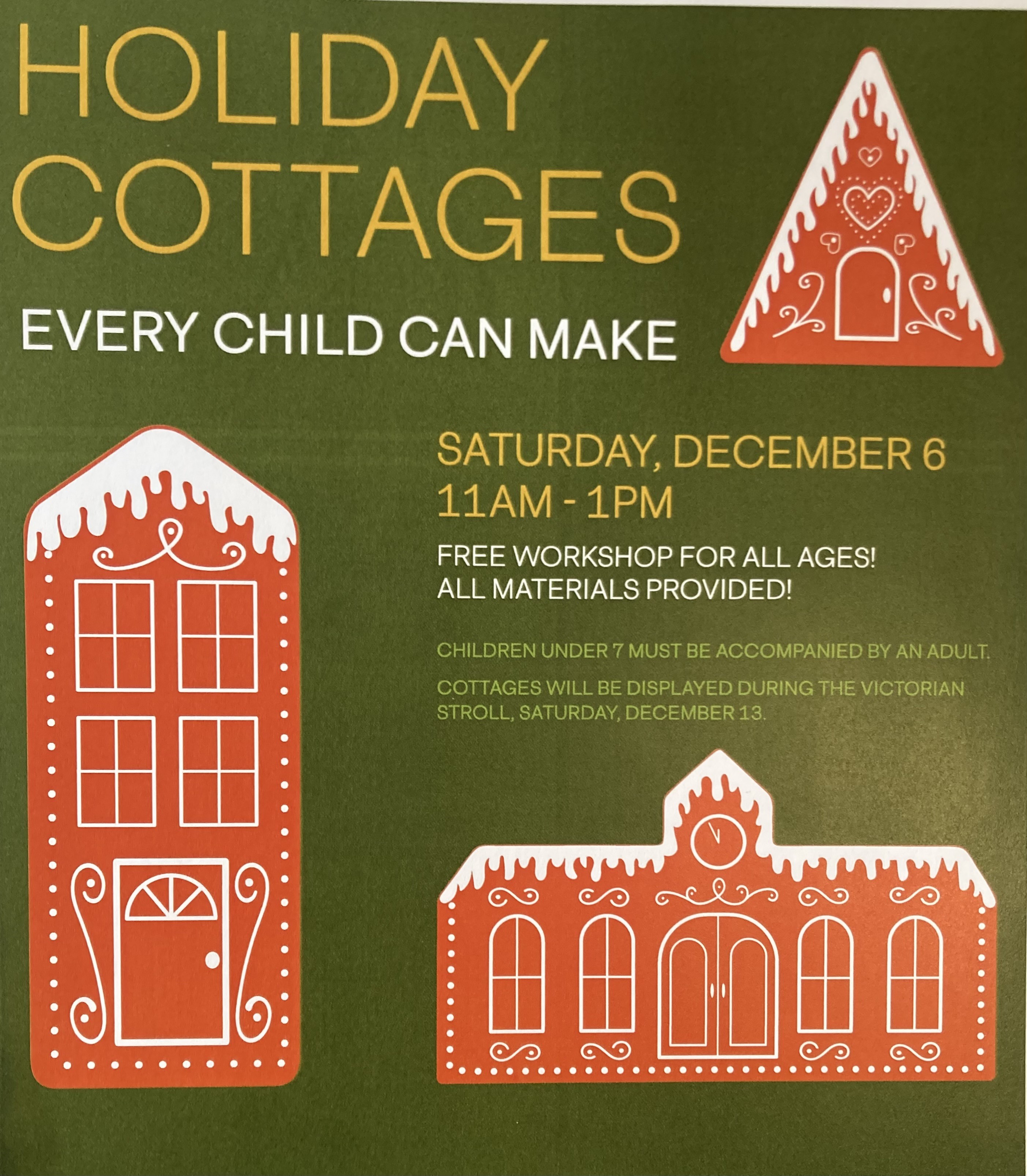 Free workshop for all ages. All materials provided. Children under 7 must be accompanied by an adult. Cottages will be displayed during the Athens Victorian Stroll on December 13.