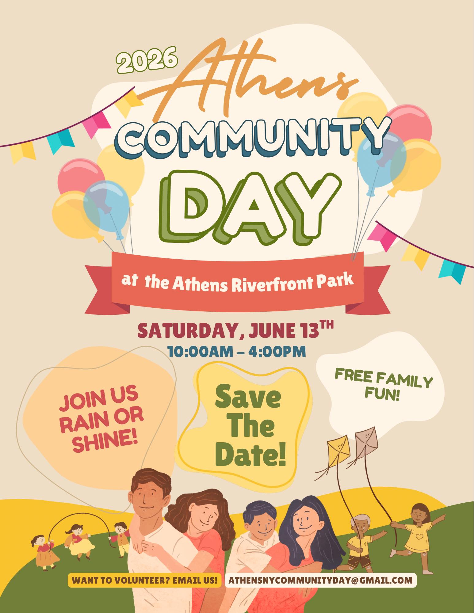 Athens Community Day returns on Saturday, June 13 at Athens Riverfront Park with a full day of free fun for all ages. Enjoy live entertainment, kids’ activities, a fishing derby, local organizations, raffles, and more.