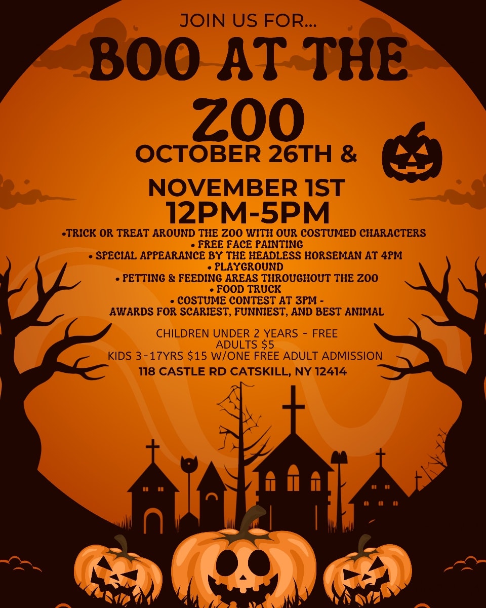 Celebrate Halloween at Boo at the Zoo at Bailiwick Animal Park in Catskill. Enjoy trick-or-treating, a special appearance by the headless horseman, pony rides, contests, and family-friendly fun!